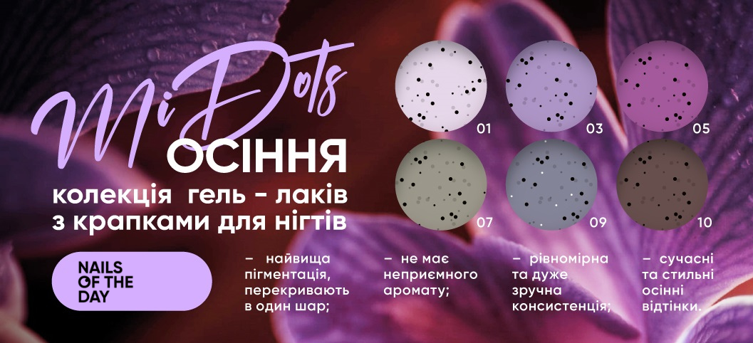 Ласкаво просимо в світ неймовірного осіннього вайбу, що приносить з собою колекція гель-лаків з крапками NAILS OF THE DAY MiDots: