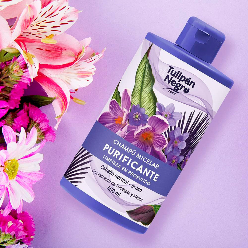 Шампунь Tulipan Negro глибоко очищає волосся та шкіру голови. Надає волоссю довгого блиску завдяки екстракту м’яти, який допомагає видаляти забруднення. Дія евкаліпта нормалізує надлишок сальних виділень, накопичених у волоссі, роблячи волосся блискучим та чистим протягом довгого часу.